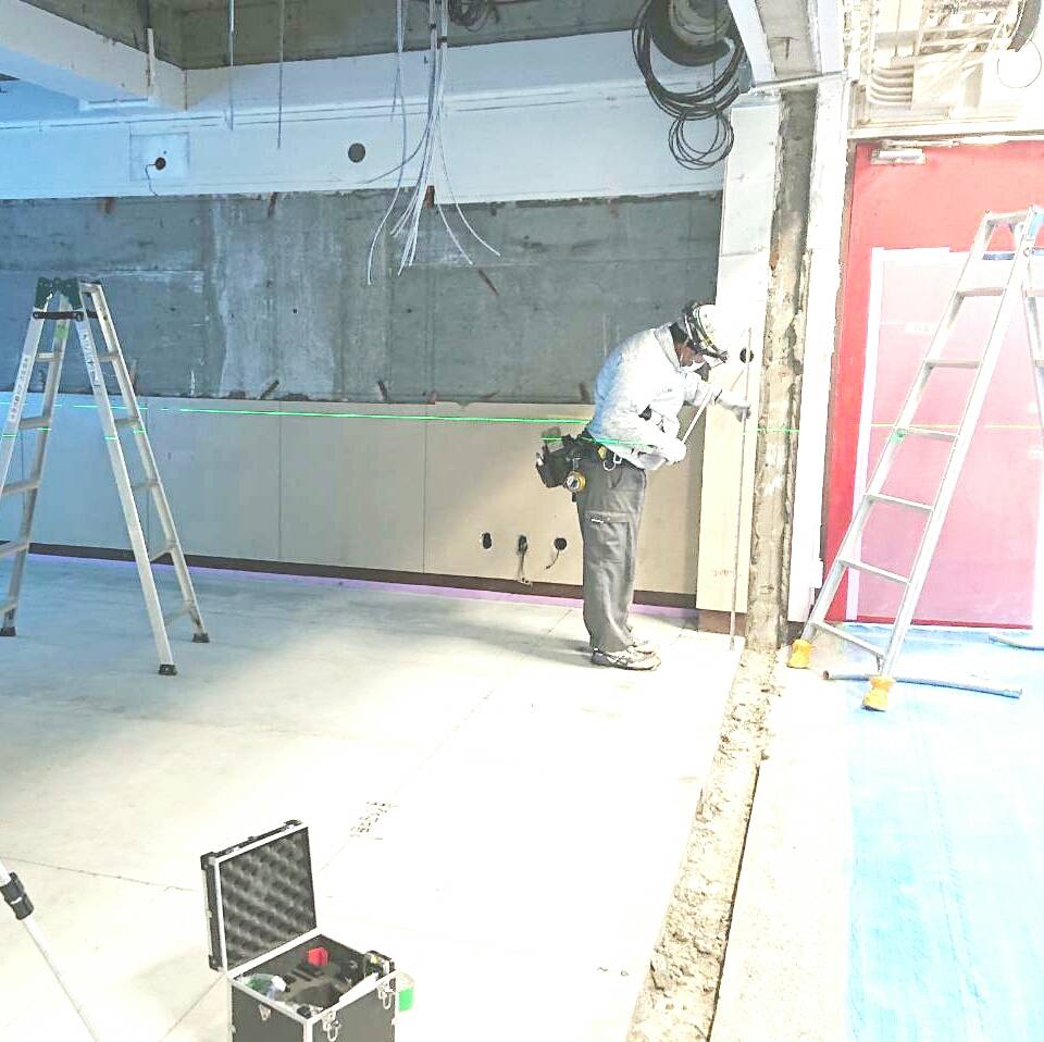 | 墨出しとは?どんな仕事?? 「墨出し?って?どんな仕事なの?」と、よく聞かれることも多いのでここでは、墨出しの事業内容についてご説明させていただきます。 よく建設の測量とも言われていますこのお仕事! ホリエモンさんは、youtubeで理数系の建設の測量とも仰っておりましたが、 まさに、その通りなんです!! 具体的に!墨出しとは?? 基本的に二人で行う仕事です。 建設現場で測量機を使いポイントをつけて糸を弾く作業で縮尺図面を実寸にし建物の基本となる位置を記す重要な仕事です。 簡単にご説明すると、設計図の内容を実際の現場の地面や床に基準置を墨で書き込み、壁や柱などの位置を出していくお仕事です。 もっと、簡単に言うと、紙に書いた設計図を実際の現場に、拡大して書いていくというお仕事になります。 その墨出しした線に沿って大工さんなどその他の、職人さん達の技術により建物が建てられていきますので、 ほんの数ミリ以下の繊細なお仕事内容なのです。 なので、墨出し職人の頭の中は、建物が建つ前のゼロの空間状態から明確な建物のイメージが描かれているのです。 設計通りに建物を立てるためには、これらの業務が重要といえます。 墨出し作業手順 1・作業箇所と現場監督さんとのコミュニケーション まずは、現場監督さんと共に墨出しに伴う作業箇所を設計図を見ながら確認していきます。 工程表通りに作業がスムーズに行えるように現場監督さんとの話し合いや確認はとても、重要です。 この時に、監督さんはもちろん、同じ現場で働く他の職人さんの工程や作業内容も 考えながら建物が建つまでの工程をイメージし作業をしていきます。 なので、現場での皆さんとのコミュニケーションがとても、重要です! 2・下準備や段取り 作業をスムーズに進めるために、雨の翌日などは現場が水浸しとなりますので、特に水掃きなどの掃除が重要です。 埃りや水があると墨がにじむ為、キレイな線が引けません。 なので、先ずは線を引く場所に荷物などが積まれてないか?水たまり、埃がないか? などを確認してキレイな状態で墨を打っていきます。 3・墨出しの作業 測量機を使い設計通りの位置を測り専用のペンで床にポイントとなる目印をつけていきます。 現場の床や柱などあらゆる箇所に線を引く為の目印を付けます。 その目印と目印を墨糸といわれる墨の付いた一本の糸の両端を、二人でシッカリと目印で押さえ 一方の一人が指で糸を弾くと真っ直ぐな線が描かれます。 それが、点を点をつなぐ線となり設計図を拡大した形となります。 その線に沿ってコンクリートを打ち、外壁や内装、壁を作り、設備などが配置され建物が完成されます。 |